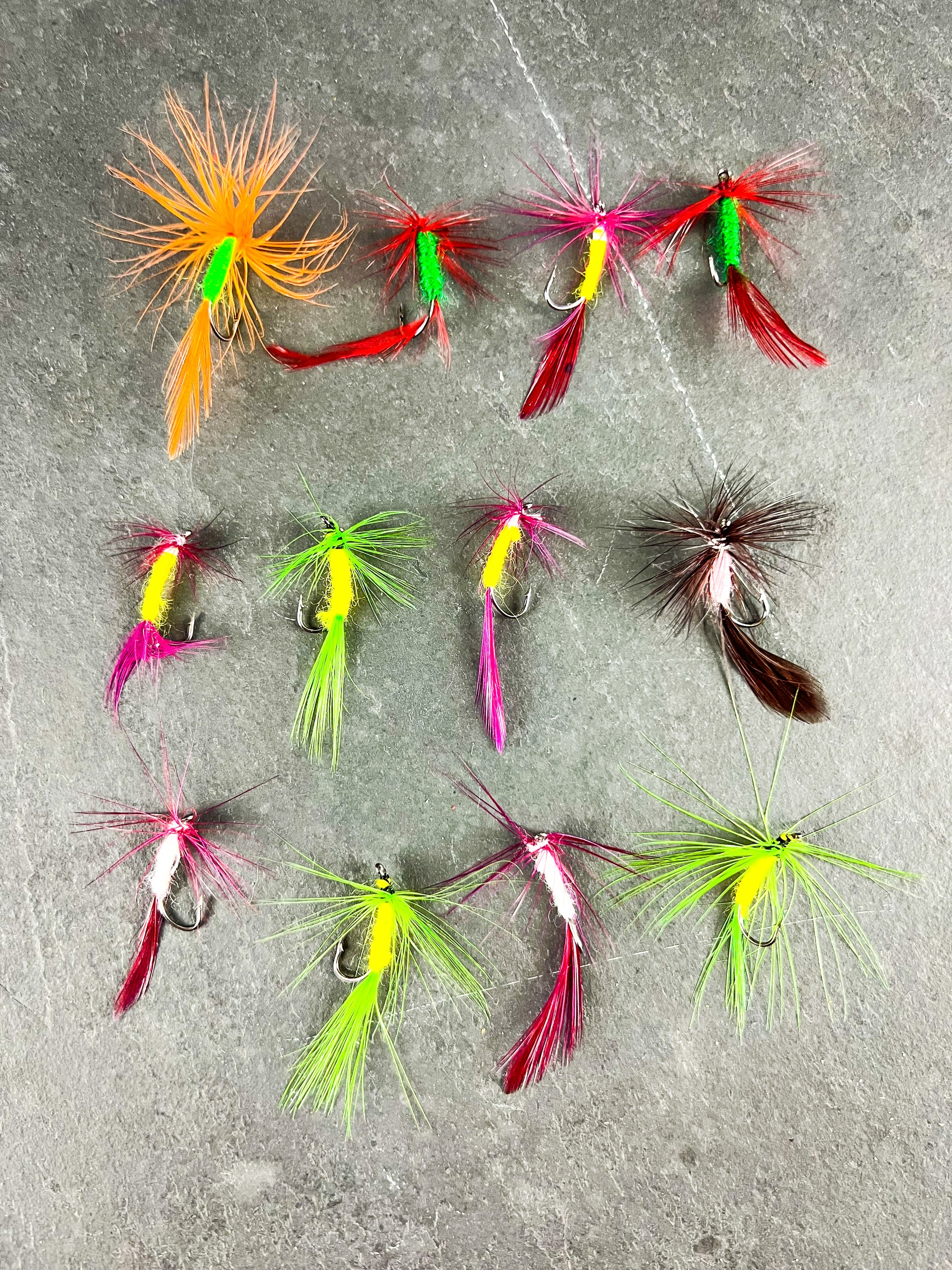 Ya sea que sea un pescador principiante con mosca o un veterano, estos clásicos siguen siendo los mejores patrones para tener en su caja de moscas. ¡Cambie, pesque más! Nuestro surtido de moscas para trucha de neón Outdoor Junction es la línea de moscas para trucha más concisa y completa jamás reunida, cada patrón seleccionado en base a los conocimientos profesionales de los mejores guías. ¡A sus ojos, estos son patrones universales de alta producción! Con este surtido de Outdoor Junction, los dioses de las moscas seguramente te verán con buenos ojos.
